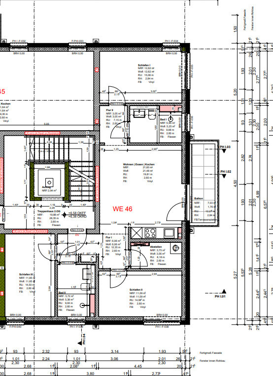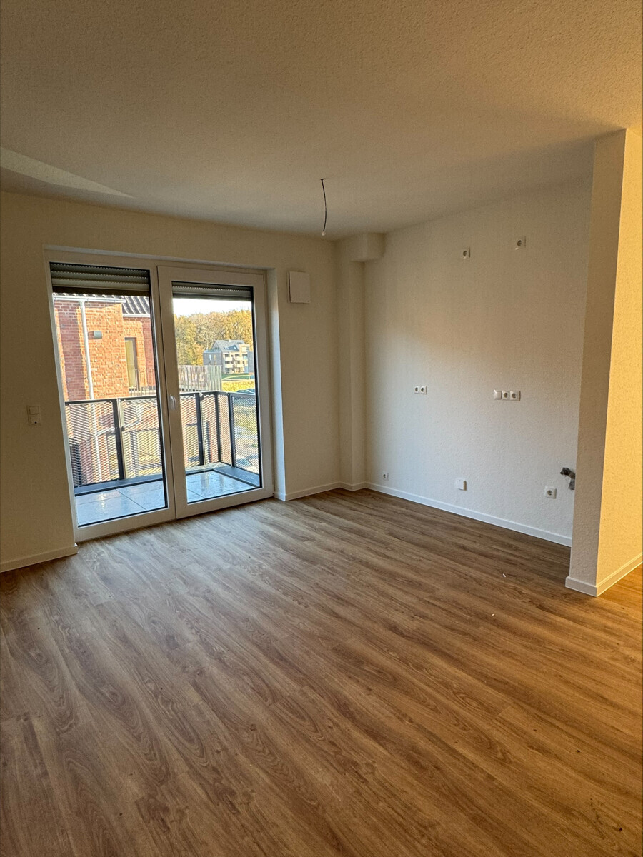 Der großzügige Wohn- und Essbereich bildet den Mittelpunkt der Wohnung und gewährt direkten Zugang zum Balkon, der sich perfekt für entspannte Stunden im Freien eignet. Die offene Gestaltung sorgt für eine helle und einladende Atmosphäre.