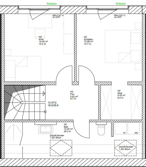 Das Haus verfügt über ein ausgebautes Dachgeschoss mit Fußbodenheizung. Dies ist ein zusätzlich nutzbarer Raum, der vielfältige Gestaltungsmöglichkeiten bietet, zum Beispiel als Arbeitsbereich oder Rückzugsort.