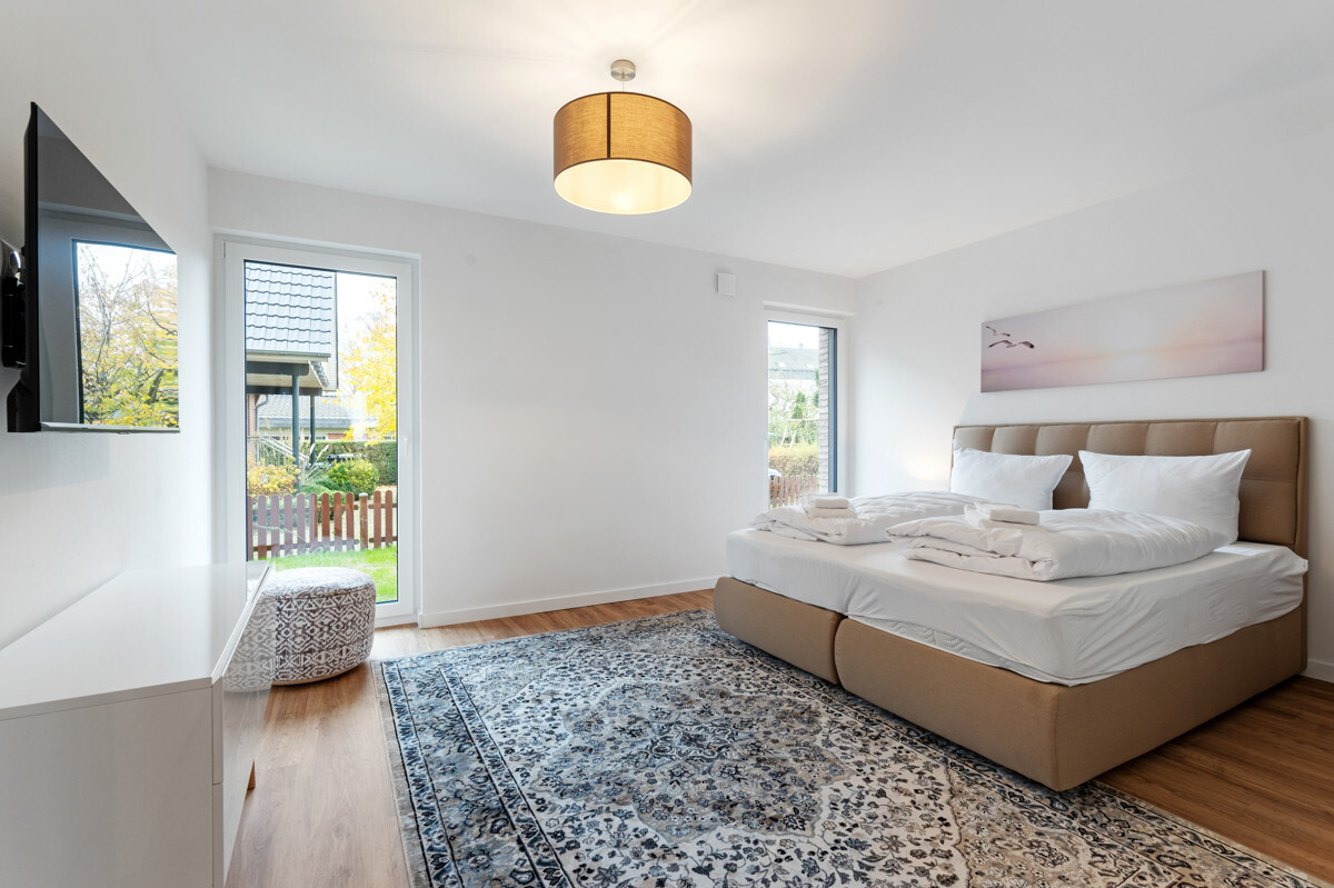Diese charmante 2-Zimmer-Wohnung im Erdgeschoss bietet auf 73 m² eine ideale Kombination aus Komfort und Funktionalität, perfekt für erholsame Tage an der Küste. Der offene Wohn- und Essbereich lädt zum Verweilen ein und wird durch eine moderne Küchenzeile ergänzt. Große bodentiefe Fenster sorgen für viel Tageslicht und schaffen eine freundliche Wohnatmosphäre.