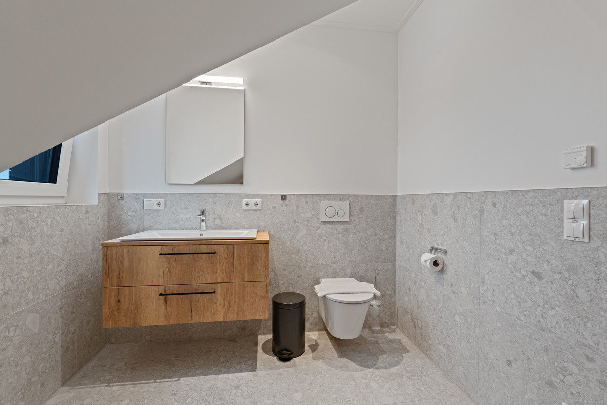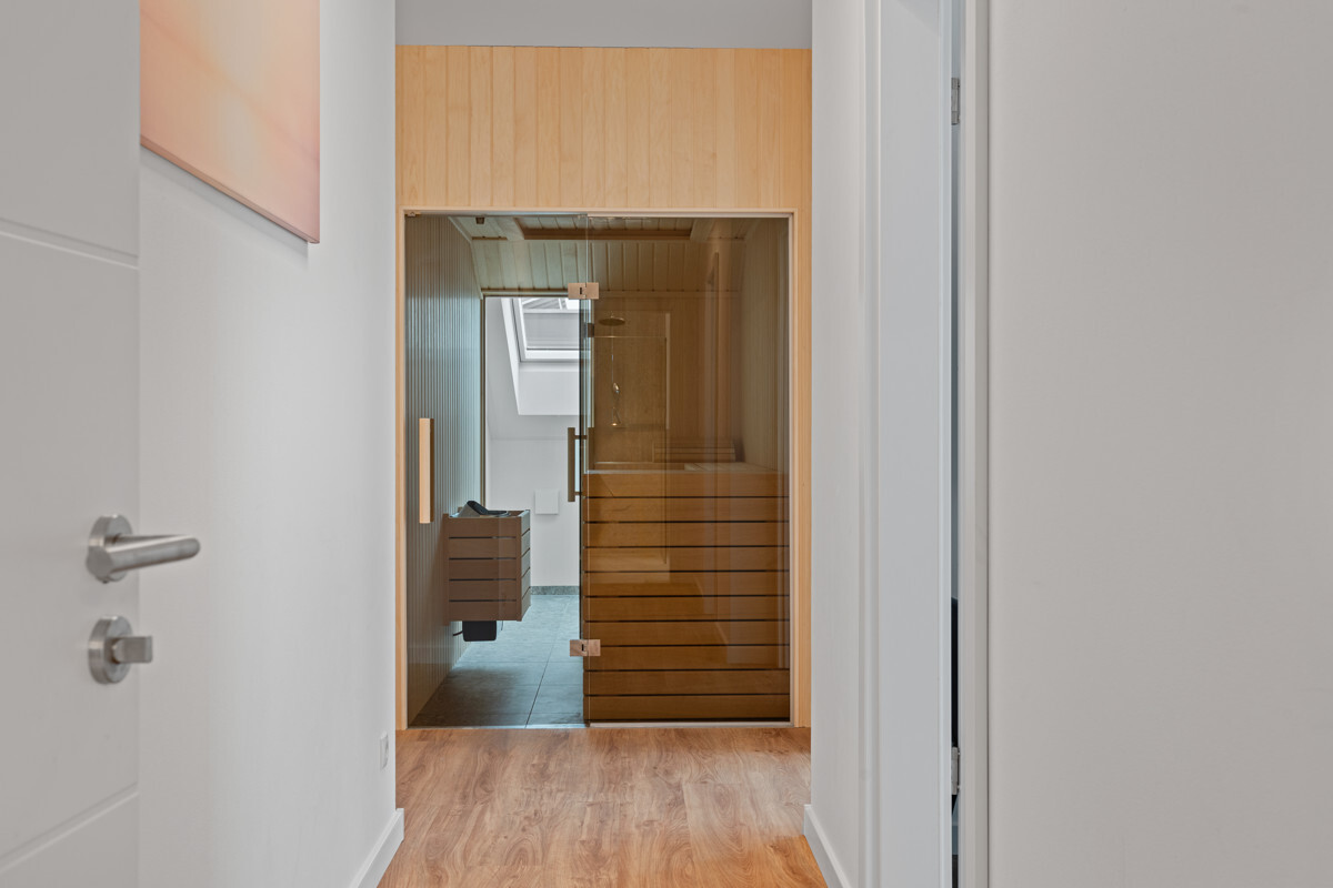 Ein besonderes Highlight sind die drei Außenflächen: Zwei Balkone und eine Terrasse, von der aus Sie einen atemberaubenden Blick direkt aufs Meer genießen können – ideal für entspannte Stunden im Freien. Die Wohnung bietet zudem eine private Sauna, die für vollkommene Entspannung sorgt. Das großzügige Badezimmer erstreckt sich über ca. 10 Quadratmeter und verfügt über eine ebenerdige, barrierefreie Dusche. Zwei Kellerabstellräume runden das Angebot perfekt ab.
